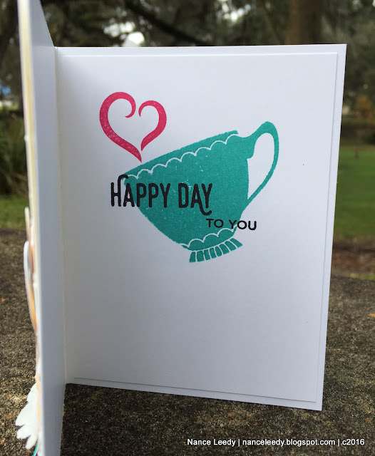 I never would have put these colors together on my onw but my...they sure are pretty together.  Love how it all pops on the basic black too.  Can you believe these gorgeous flowers?  The die cuts those layers so you can pop out the flower--so pretty!  I also love the mix and match sentiments from the Endless Birthdays photopolymer set I used here....endless combinations!